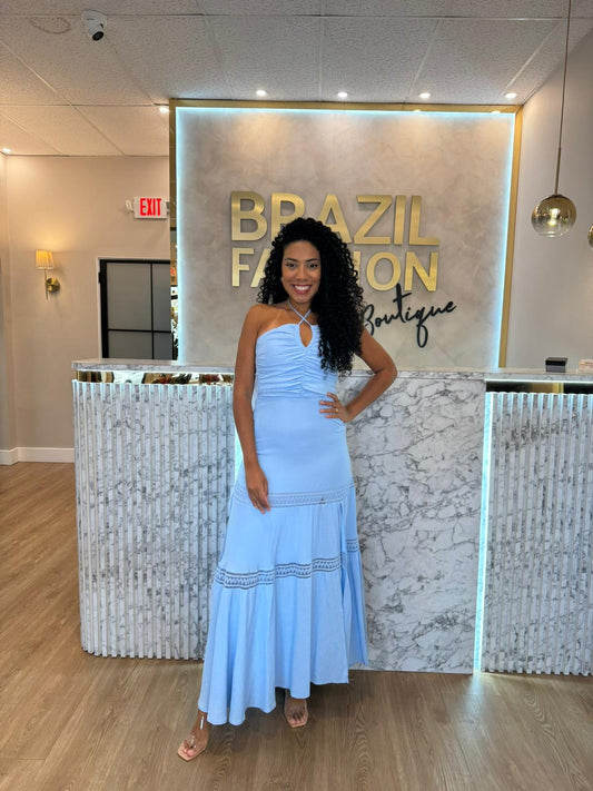 Isa Paes - Long Dress w/ Lace Hem and Blue Embroidery