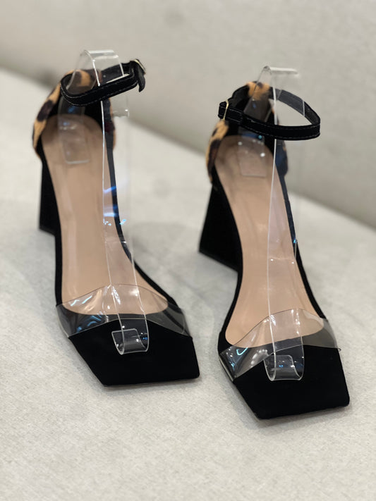 Bfb Shoes - Black/Animal Print Block Heel Sandals
